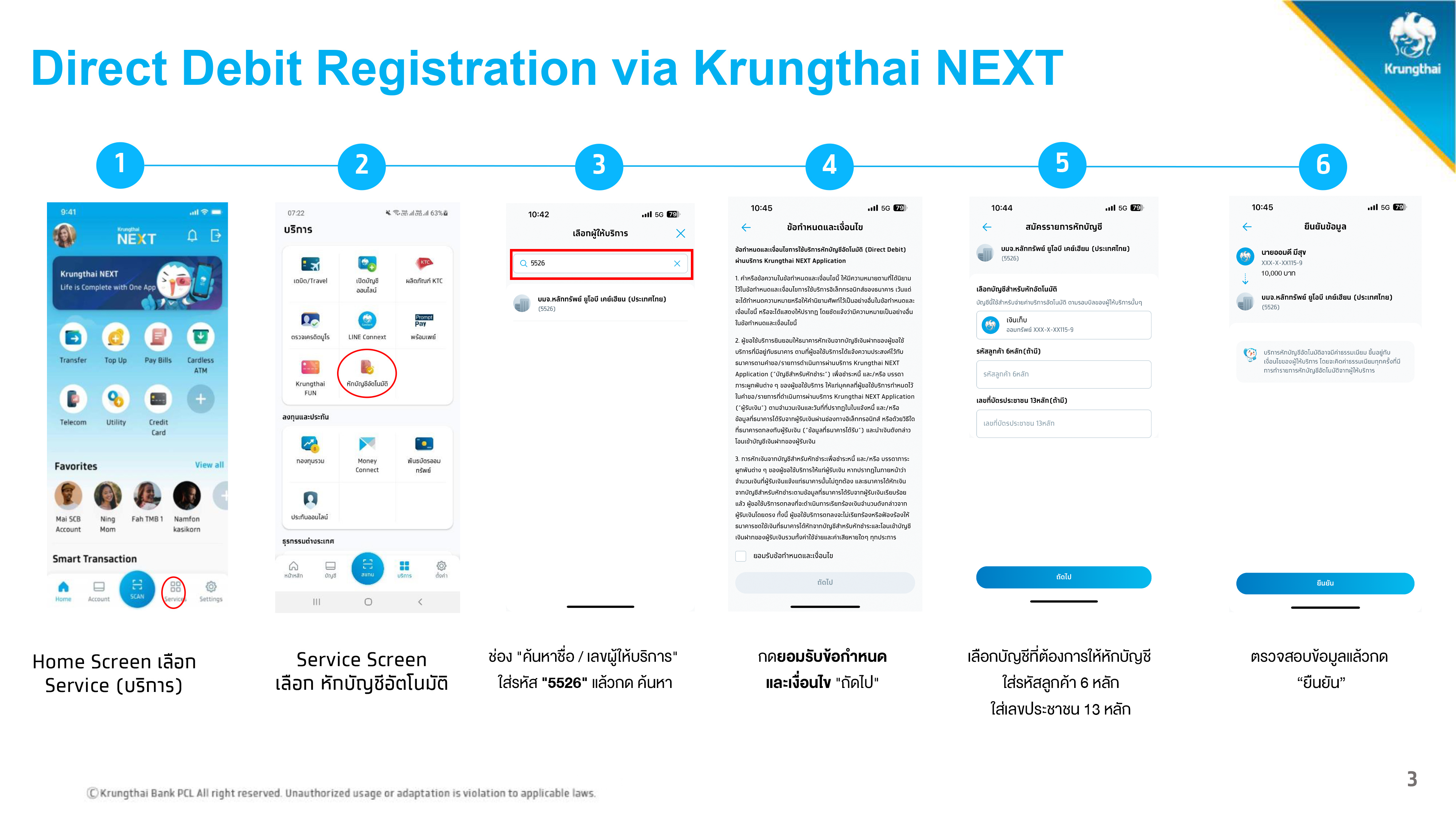 ท่านสามารถดาวน์โหลดขั้นตอนการใช้บริการทั้งหมดตามลำดับ ดังนี้