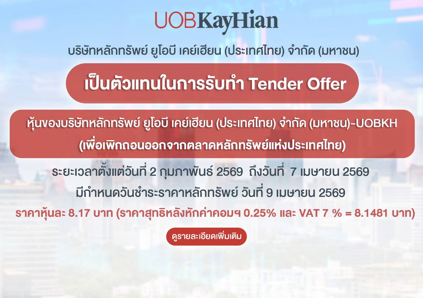 Top index leaders are DELTA (+0.6%), TRUE (+2.5%) and BDMS (+3.2%). Meanwhile, AOT (-1%), ADVANC (-0.6%) and KBANK (-1.3%) are the top index laggards
